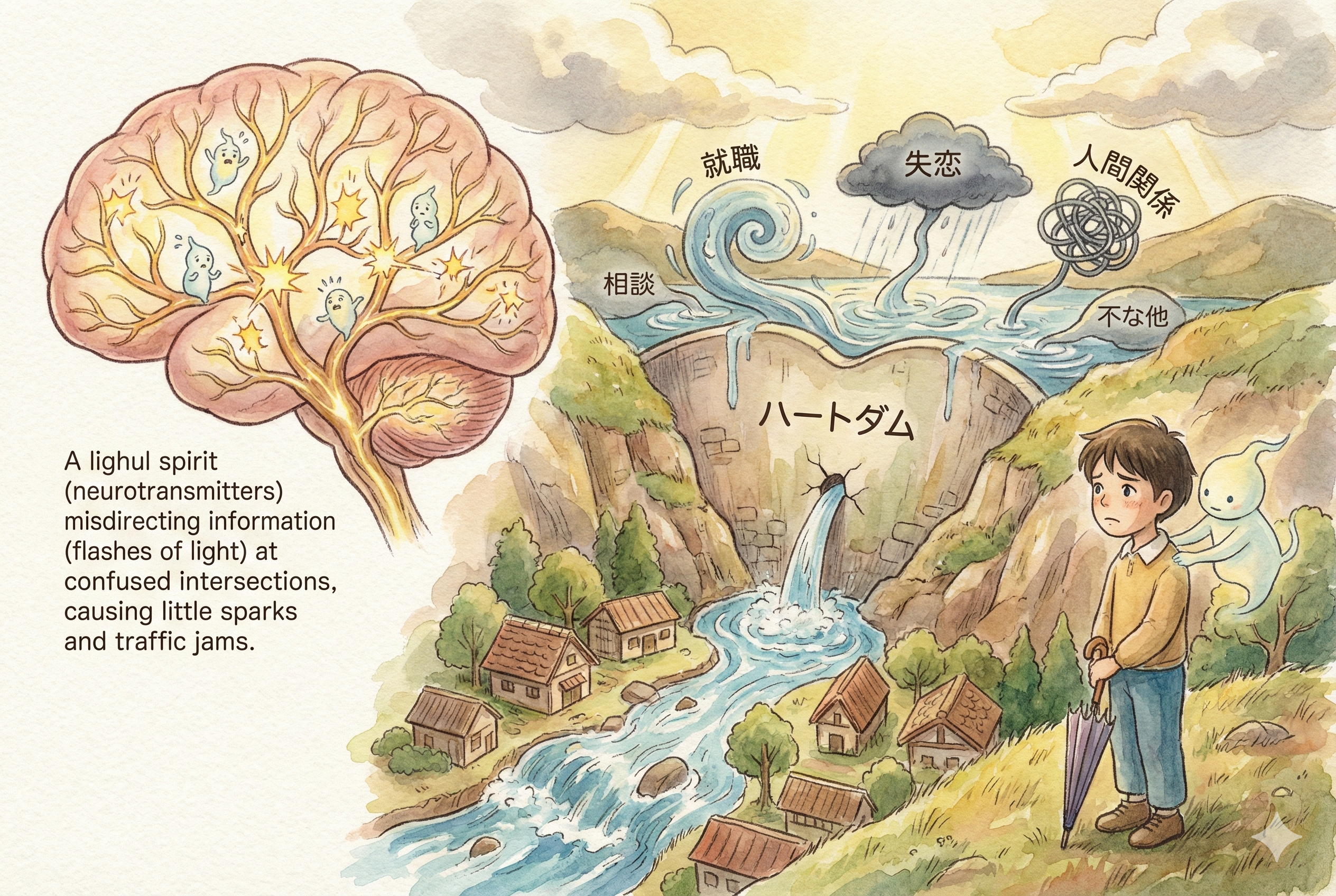 統合失調症では、このドーパミンが過剰に働いたり、逆に不足したりすることで、情報の「交通整理」ができなくなります。