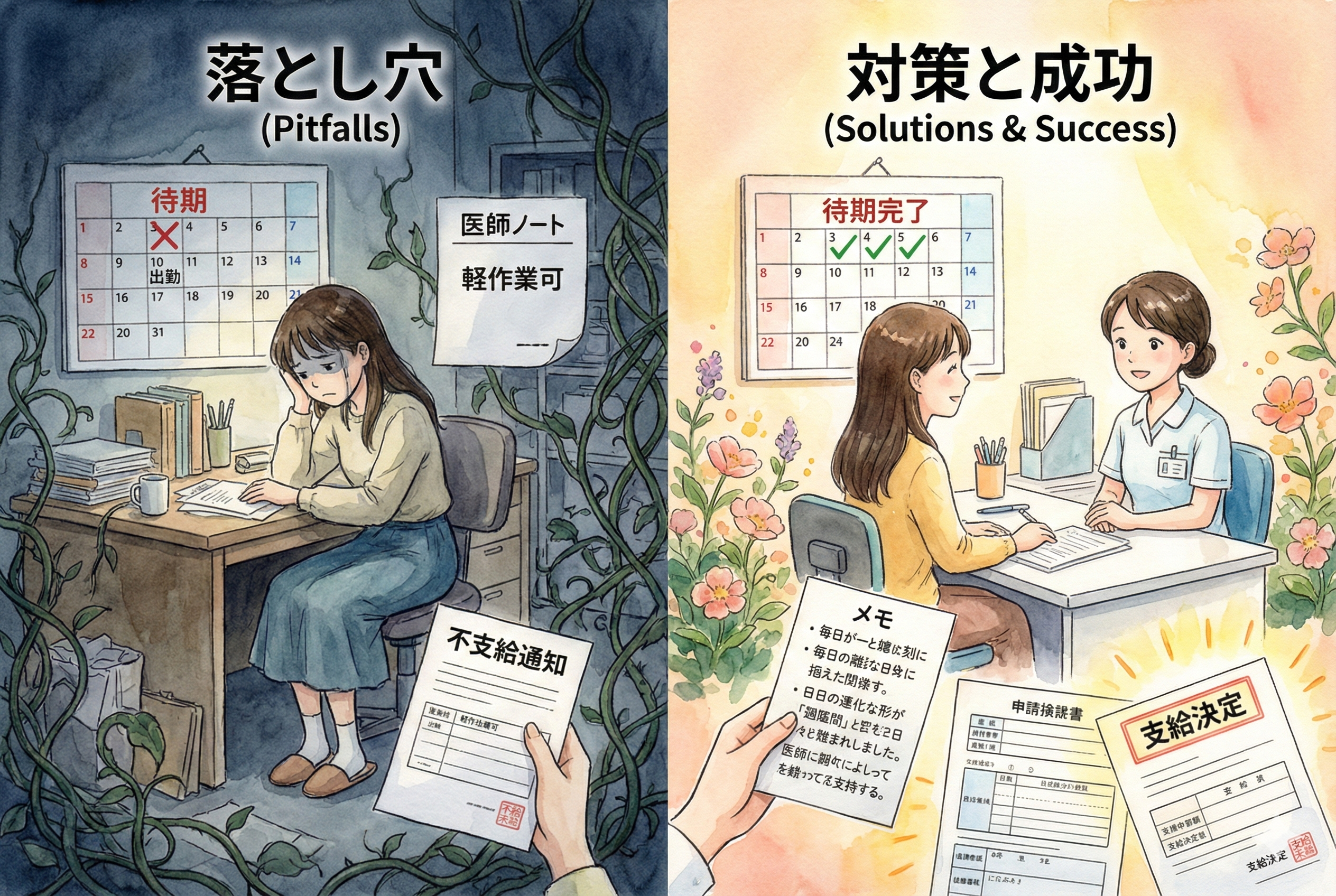 対策: 土日祝日も待期期間にカウントされます。「金・土・日」と休めば、月曜日から支給対象です。「3日間は絶対に職場に顔を出さない」ことが鉄則です。